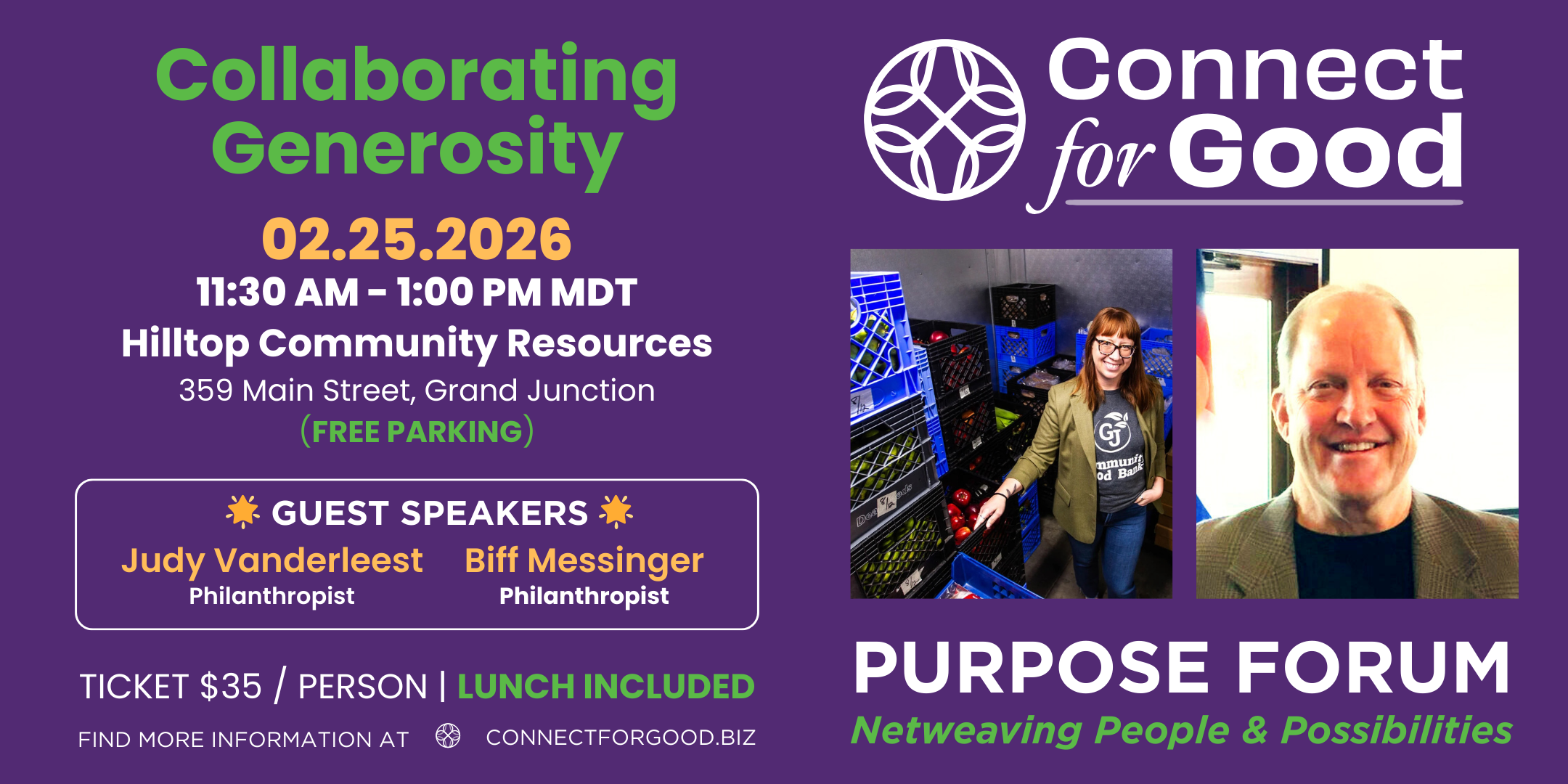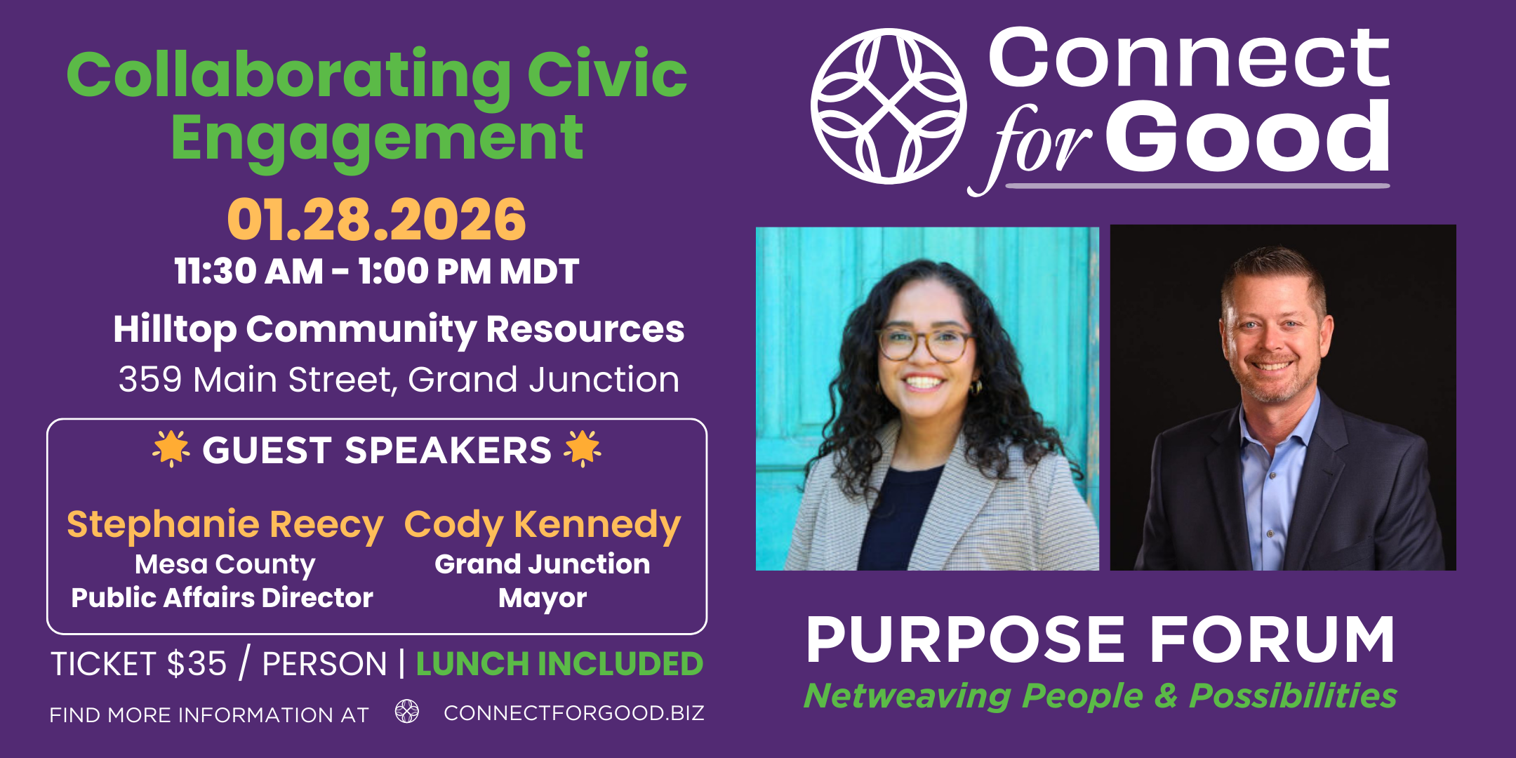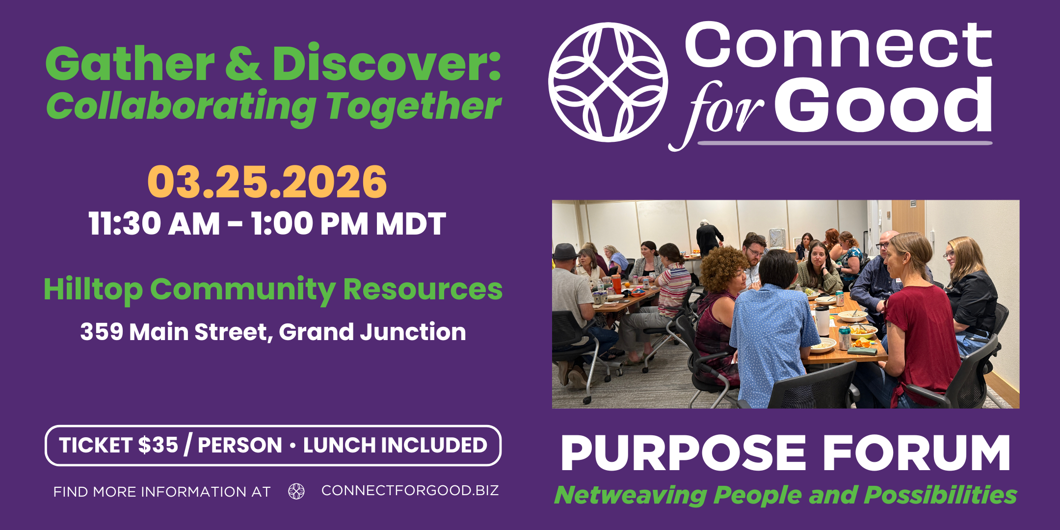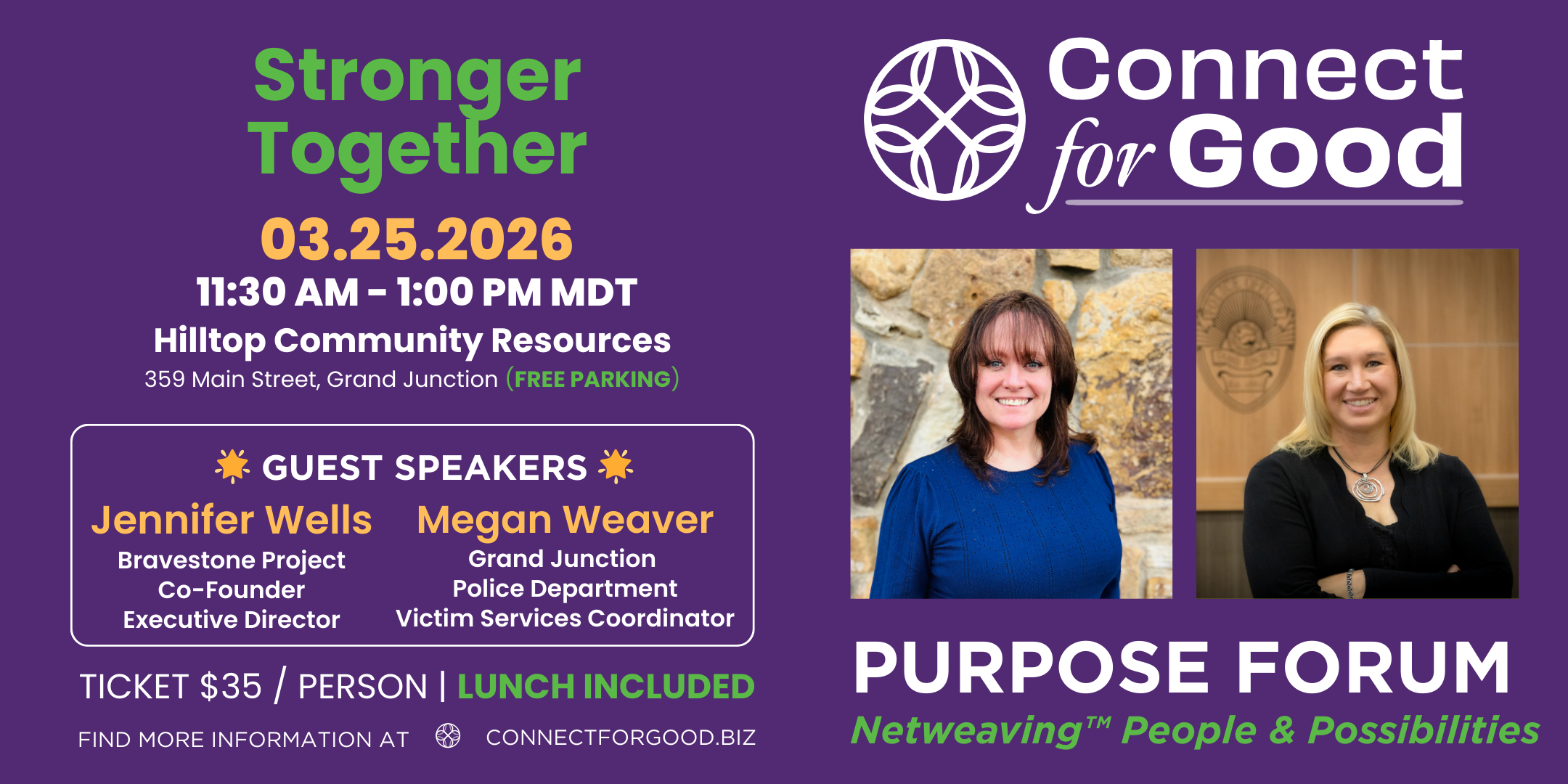 The Community Connect Purpose Forums are monthly gatherings designed to inspire, engage, and bring people together for the greater good. Hosted by Connect for Good, these events blend the energy of business networking with the heart of service and community impact.